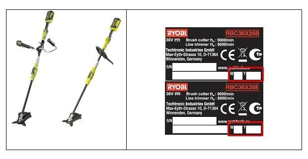 wenn Sie eine Ryobi 36V Motorsense, Modell RBC36X26B oder RBC36X26E, besitzen, beachten Sie bitte aufmerksam diesen Sicherheitshinweis:
